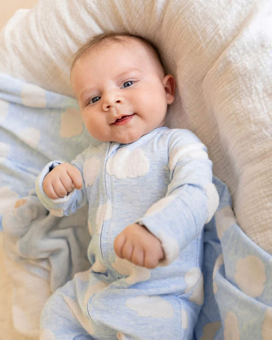 Blue Cloud Organic Jacquard Onesie - Pale Blue