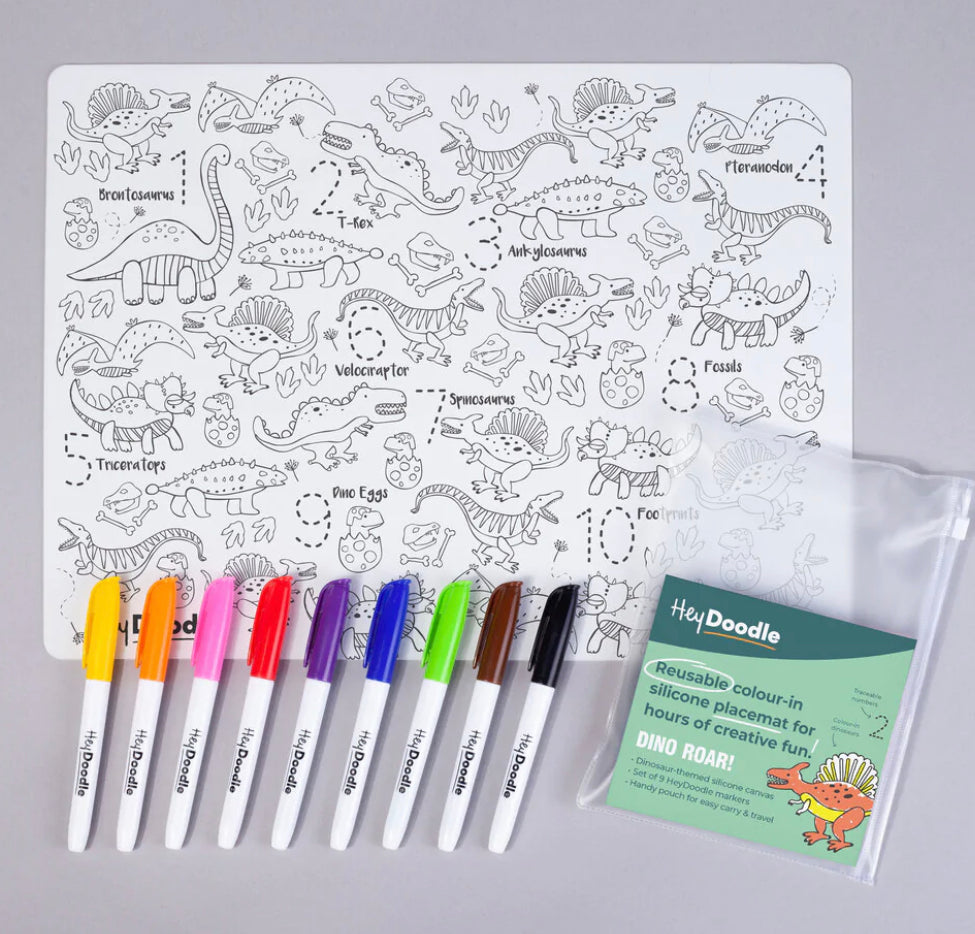 *Pack includes 1 HeyDoodle Mat (40x30cm), 9 HeyDoodle Markers and a travel pouch.