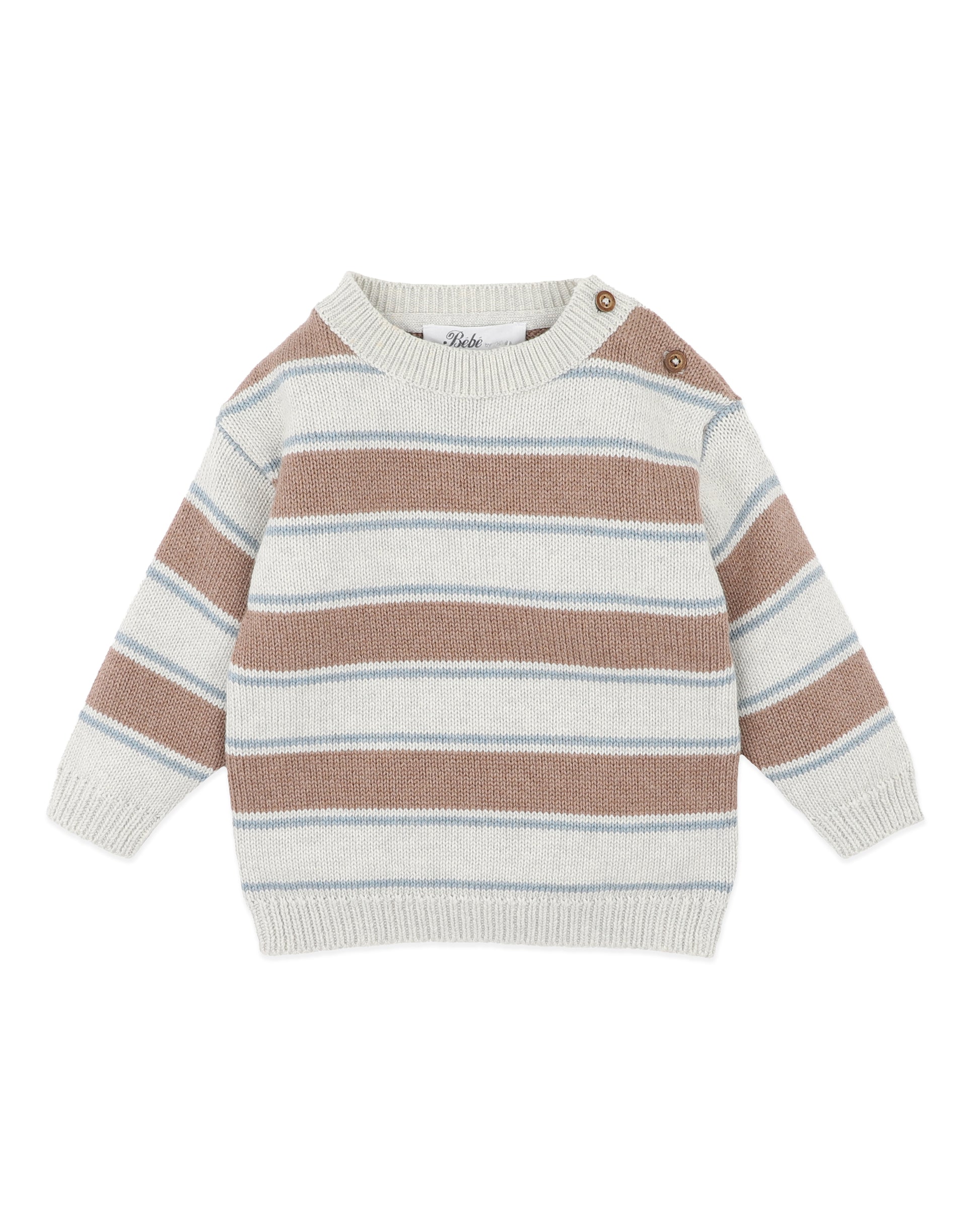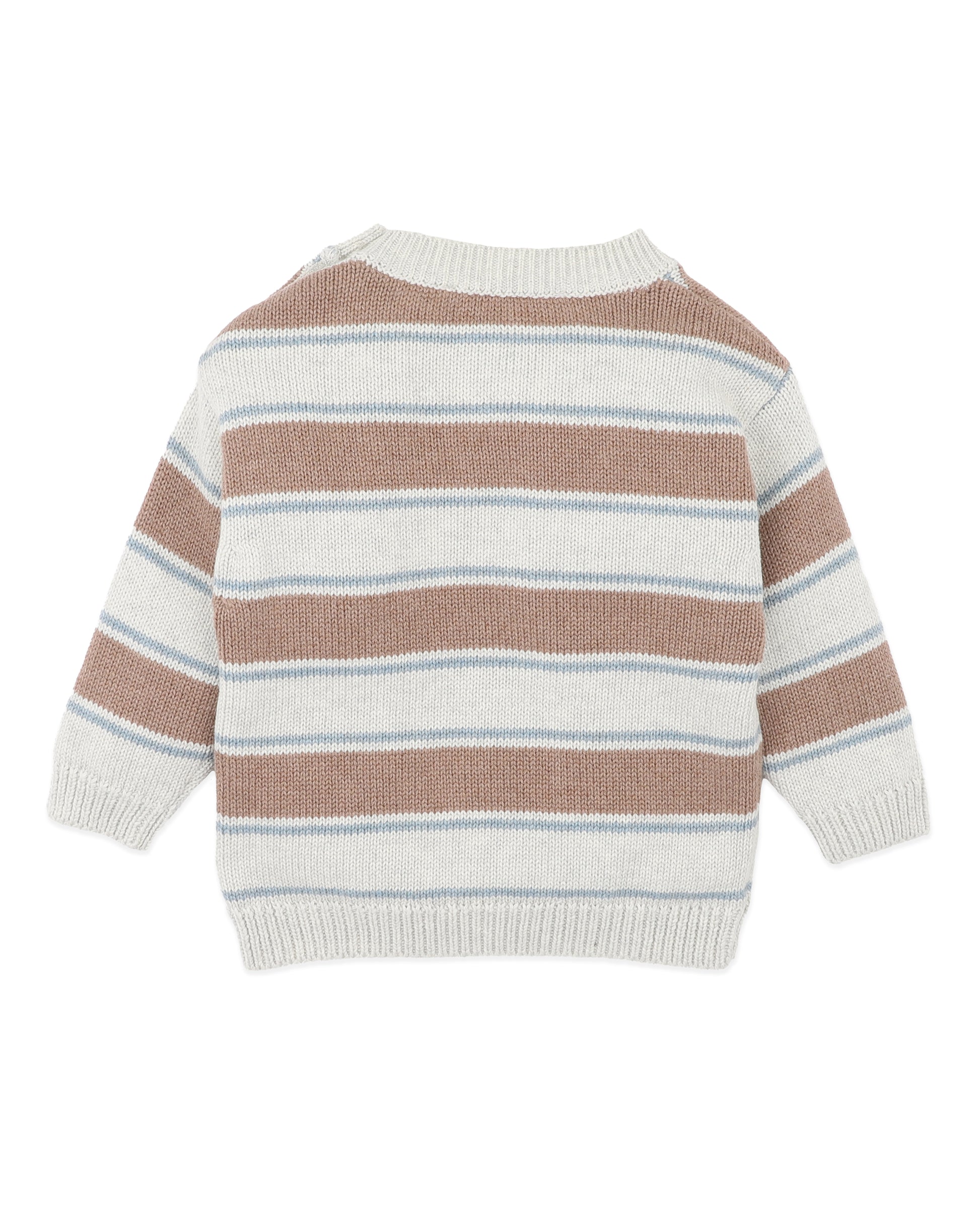 Soft, cosy and made for everyday layering, this classic striped knit brings a timeless feel to little winter wardrobes. Crafted in a gentle organic cotton and wool blend, it’s designed to keep tiny bodies warm without feeling heavy. Finished with thoughtful details and an easy shoulder opening, it’s a sweet essential for cooler days, perfect for mixing and matching with coordinating knits.