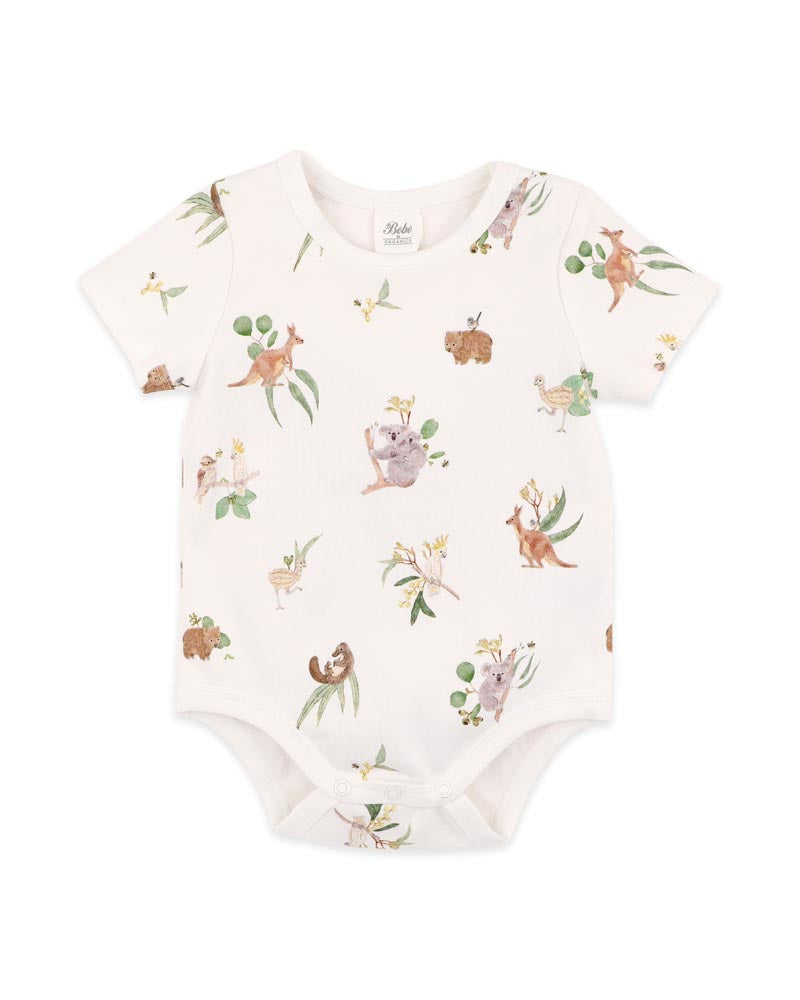 Celebrate the charm of the Australian bush with this adorable Australian Animal Print Bodysuit, crafted from soft and breathable 100% Organic Cotton. Featuring a hand-illustrated all-over print of native favorites, this sweet style brings a little wildlife wonder to everyday dressing. Designed for comfort and ease, it features a classic crew neckline with a press stud shoulder opening for quick changes, along with snap closures at the base. Perfect worn on its own or matched back with our Australiana print leggings or shorts for a coordinated outfit.