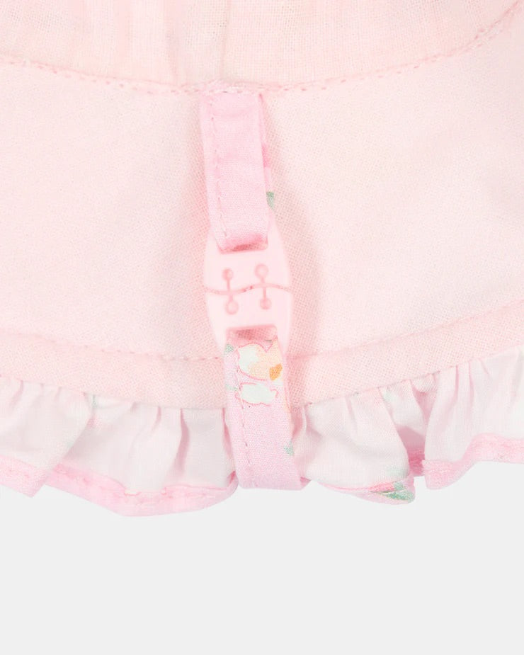 Toshi Bell Hat Matilda is a flattering and feminine bell shaped hat. The baby sunhat is crafted from the finest quality 100% cotton. Toshi Bell Hat is a flattering and feminine bell shape baby sunhat. The UPF 50+ UV rating indicates maximum sun protection. A head tie with toggle facilitates adjustable sizing. The chin tie with toggle secures the hat and offers ease of wear. The security release clasp on the chin tie is designed to enhance wearer safety. The sunhat is fully lined for increased comfort. Pretty styling is created with a softly frilled border. An original and exclusive Toshi print design is featured.
