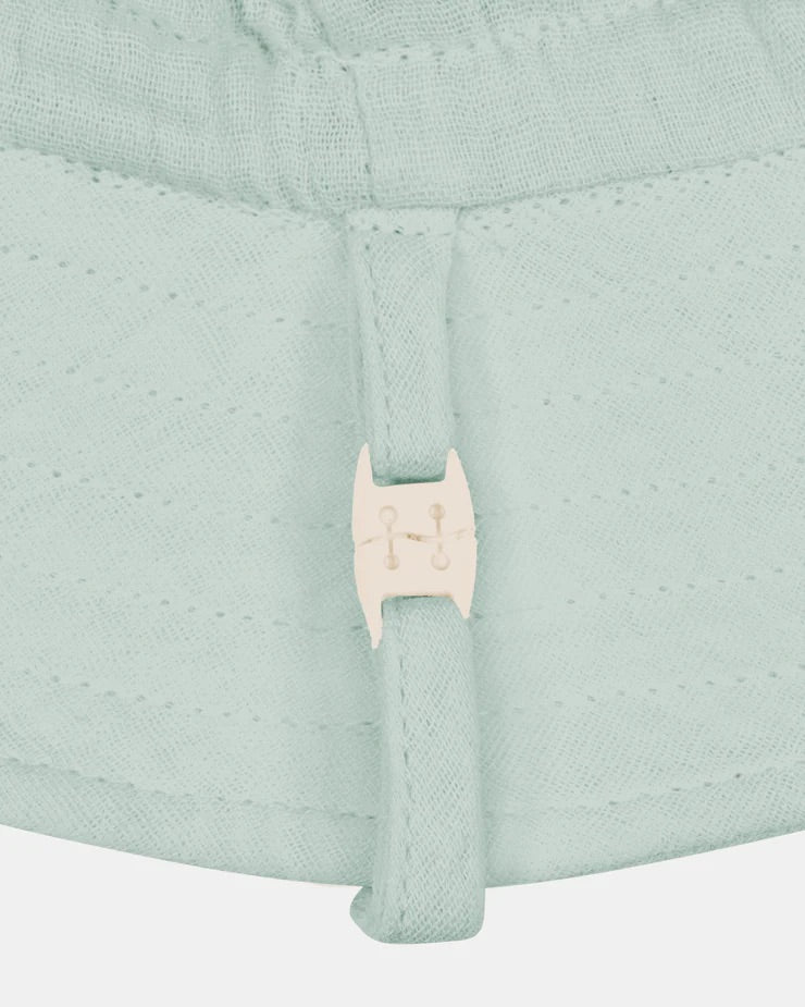 Toshi Bell Hat Sammy is crafted from the finest quality certified 100% organic cotton yarn. Toshi Bell Hat Sammy is a flattering bell shaped hat. The cheesecloth fabrication features a supremely soft and gently nurturing texture. The UPF 50+ UV rating indicates maximum sun protection. A head tie with soft cotton toggle creates adjustable sizing. The chinstrap with soft cotton toggle secures the hat and offers ease of wear. The security release clasp on the chin tie is designed to enhance wearer safety. The sunhat is fully lined for increased comfort.