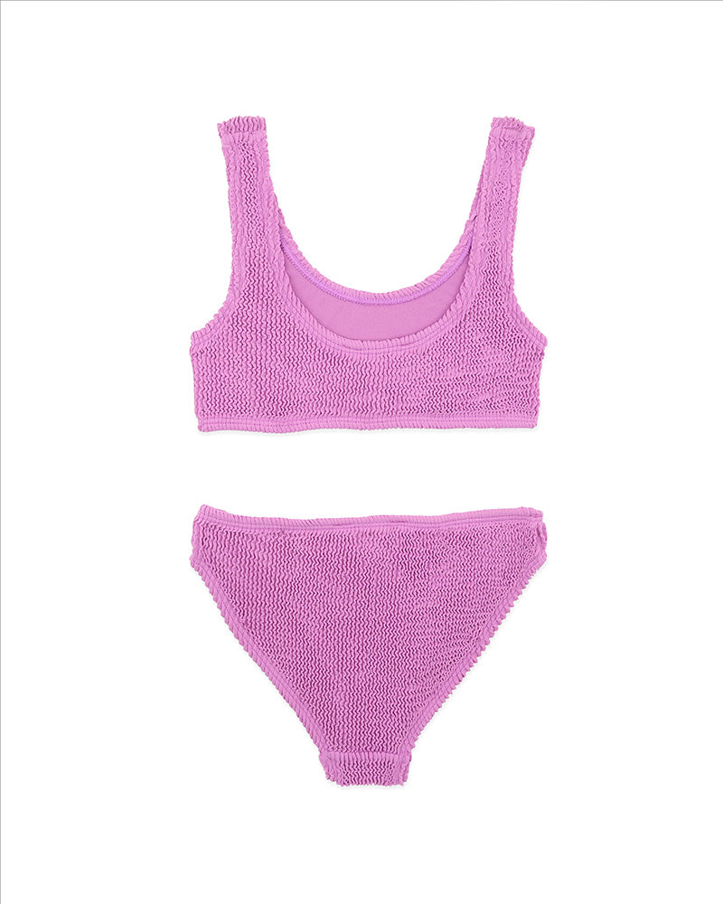 Made for sun-drenched days and endless poolside fun, this textured bikini set brings cool confidence to every splash. With its ultra-comfy shirred fabric and sporty crop top shape, it's the go-to choice for active girls who want to dive, swim, and play in style.