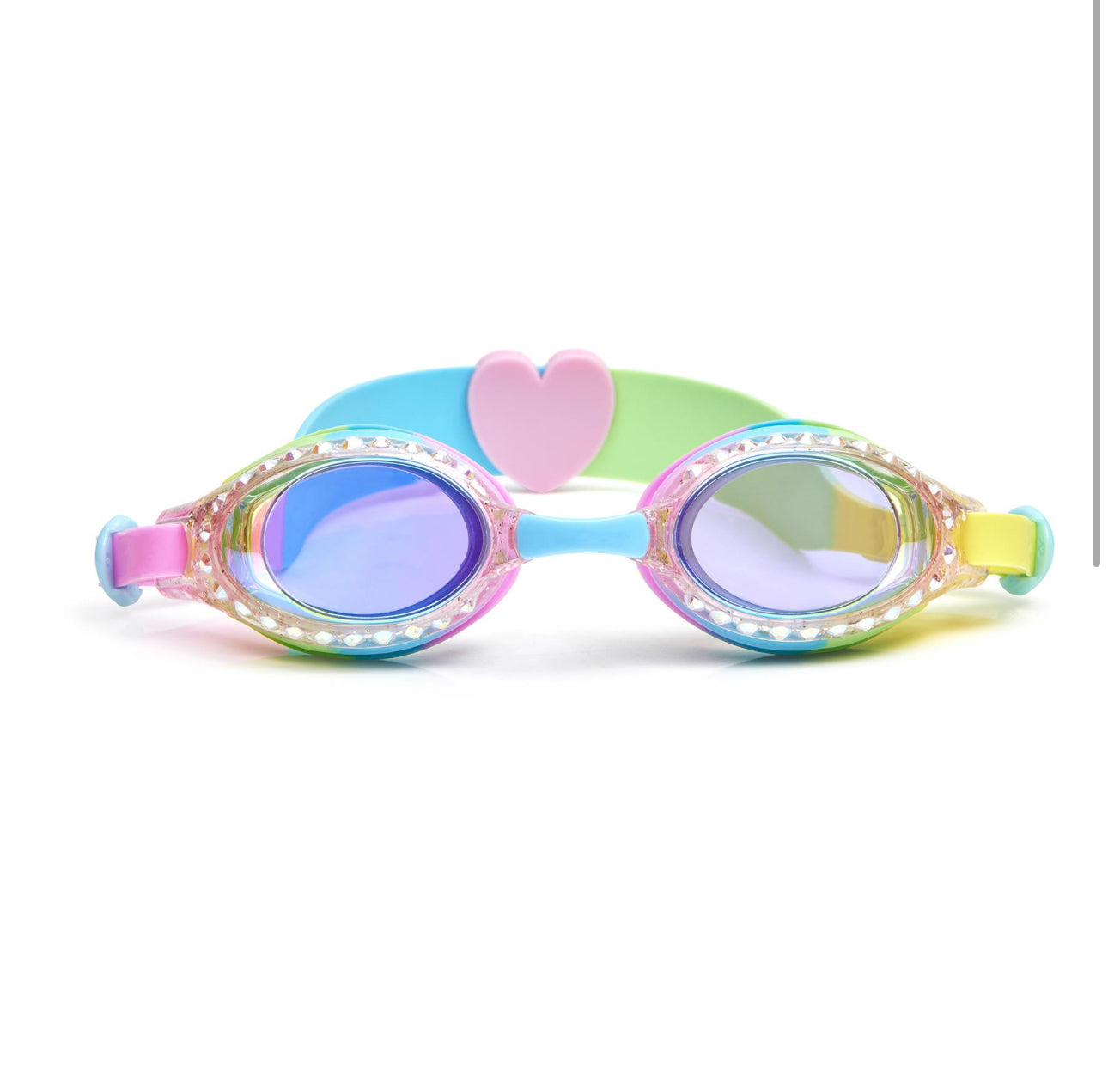 Did you know Bling2o's first swim goggle was a glitter classic? This iconic style is featured on a traditional shaped frame infused with glitter and embossed with a full set of colorful rhinestones around both of the lens. This latex free classic is a definite pick for any Bling enthusiast and is available other colour ways Our goggles offer a variety of features proving they are the real deal