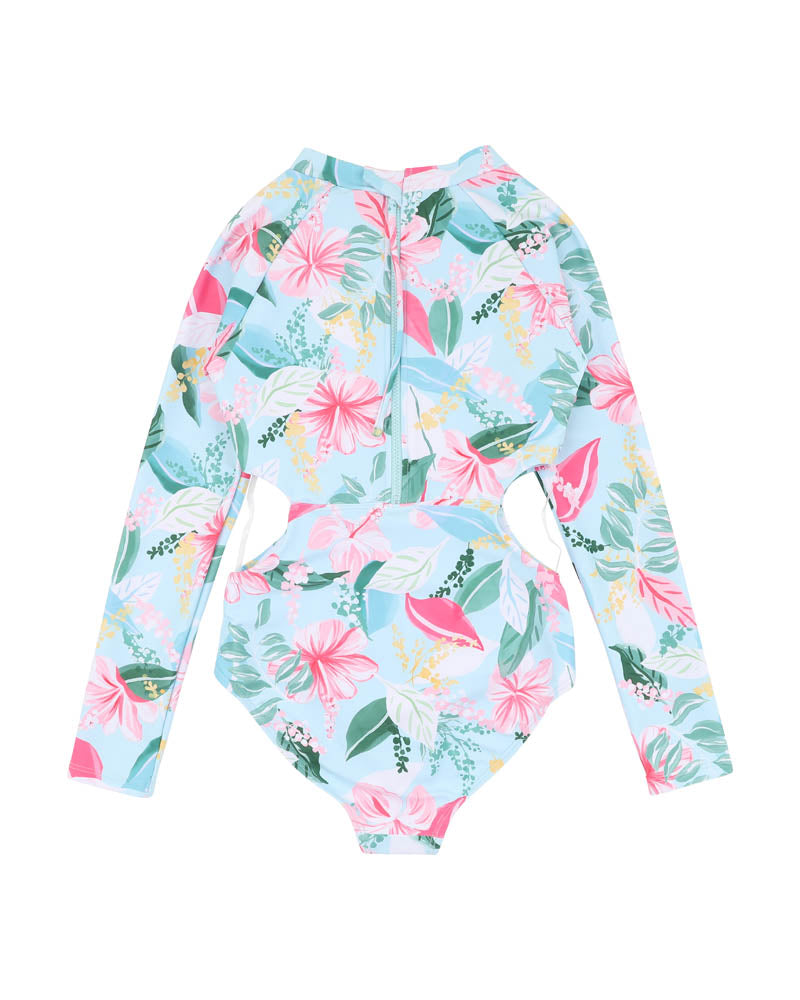 Make a splash this summer in our Tropical Floral one piece. With its playful side cut-outs and vibrant blooms, this swimsuit is perfect for long sunny days by the pool or seaside adventures. The fully lined design ensures comfort and coverage, while the back zip makes dressing easy.