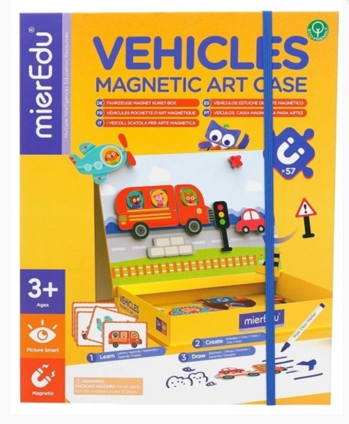 These educational magnetic puzzle games are easy to carry and fun to play on the go. With the help of magnets, kids can create their own stories and images on the board, bringing their imagination to life. Composed of 50 magnets, 10 cards, and 1 wipe-clean marker, this case is conveniently packed in a handy way and easy to carry around. Once the case is opened, it can be transformed into a large wipe-clean drawing board, allowing kids to draw and create their own stories. Magnetic art case games are perfect for developing creativity, drawing and fine motor skills.