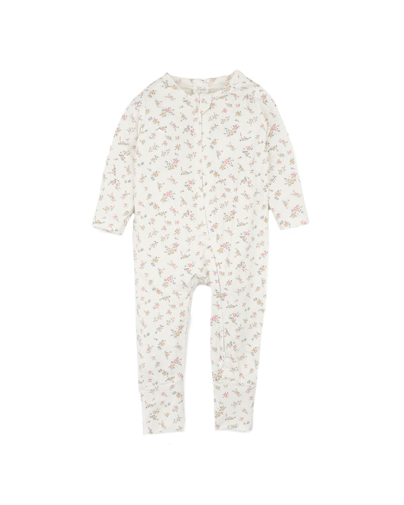Delicate blossoms dance across this charming long sleeve zip romper, crafted from a beautifully soft EcoCosy™ viscose blend. With its dreamy all-over floral print and thoughtful design, this piece offers comfort and practicality in equal measure. Perfect for snoozing, snuggling, or stretching out on a play mat, it features a full-length two-way zip for quick changes, fold-over mittens and feet cuffs for added warmth, and a protective safety fold at the neckline.