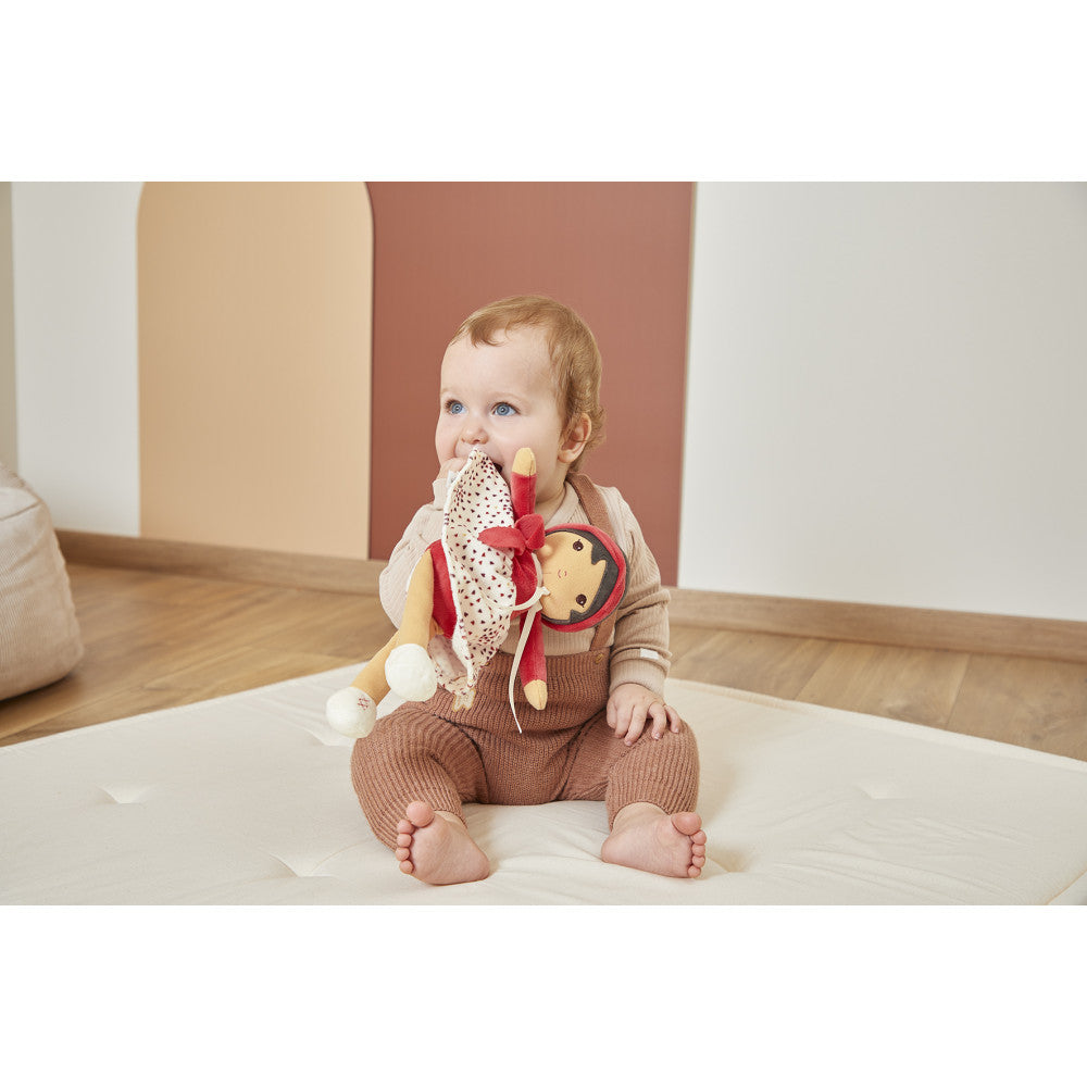 Tendresse Valentine is the perfect choice for a first doll as she is made from easy care, machine washable fabrics and at 25cm is an ideal size for any little child. Presented in an open gift box with a ribbon handle, the Tendresse range are specially designed as a comforter and doll all in one, so she is snuggly soft and ready for cuddles. Tendresse Valentine Medium is funky in her vintage retro dress with bow, copper hair and a matching flower on her headband. Her sweet tie-up ballet flats complete her stylish look. Cute as a button!