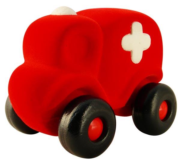 Movable soft strong rubber wheels and smooth tactile contours ensure the Large Ambulance from Rubbabu will be a favourite in the playroom. Hand made in India from 100% natural rubber, the high quality flock from Spain gives the vehicle a soft velvety feel that kids will love. Eco-friendly and ICTI fair trade certified, the Rubbabu range is tactile and squishy and designed for developing hand-eye coordination and gross motor skills. Ideal for special needs children, especially those with autism or sensory processing disorders, the Rubbabu range has simple shapes in bright colours to encourage imaginative play and is easily cleaned with a damp cloth.