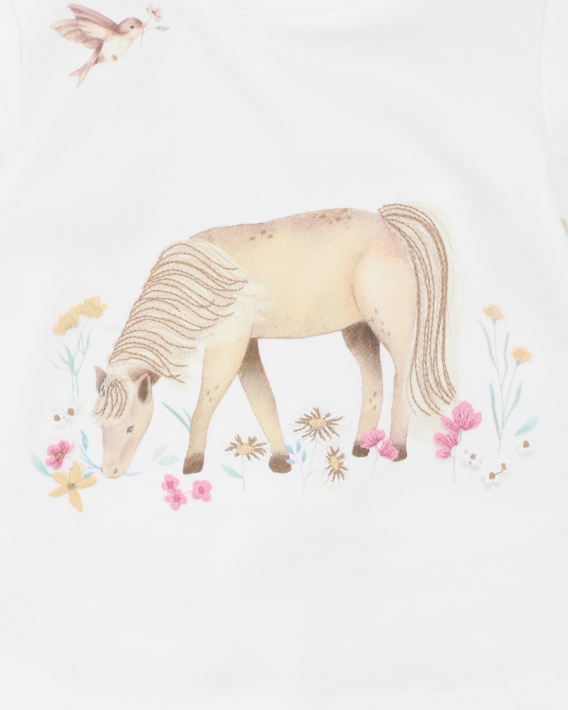 A sweet everyday essential, this organic cotton tee is perfect for layering through the cooler months. Soft, comfortable and beautifully detailed with a gentle pony illustration, it’s an easy piece for play, outings and every little moment in between.